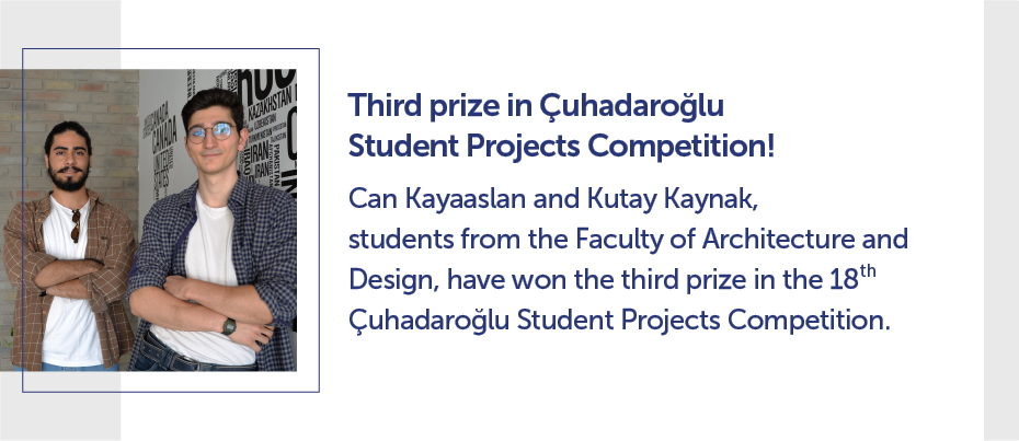 Can Kayaaslan and Kutay Kaynak, students from the Faculty of Architecture and Design, have won the third prize in the 18th Çuhadaroğlu Student Projects Competition.